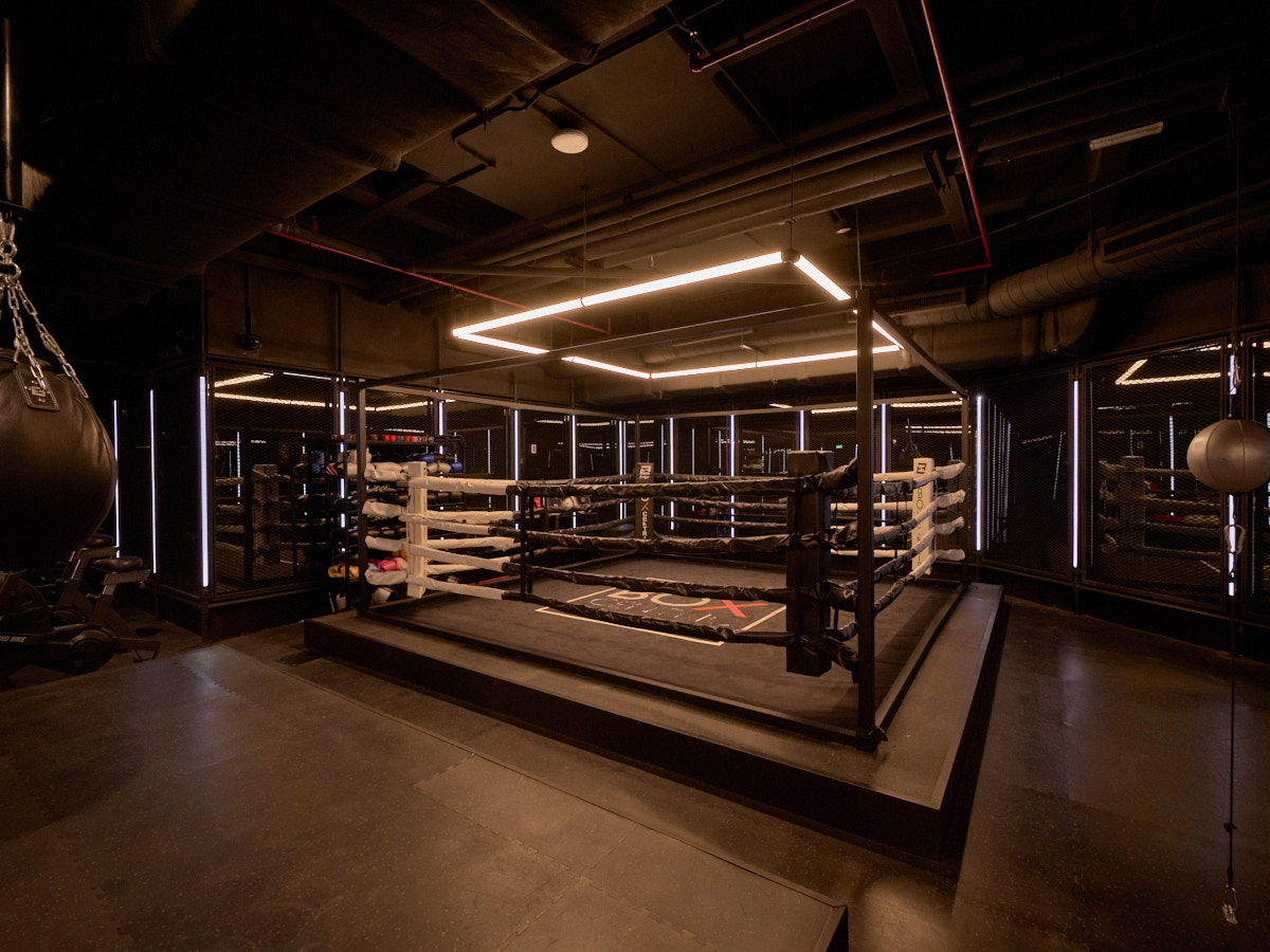 Home of heavy lifting and functional training. This area is for the members that prefer a secluded, dark and industrial workout space. The Dungeon consists of a functional training area, spinning studio, boxing center & Les Mills and TRX studio.